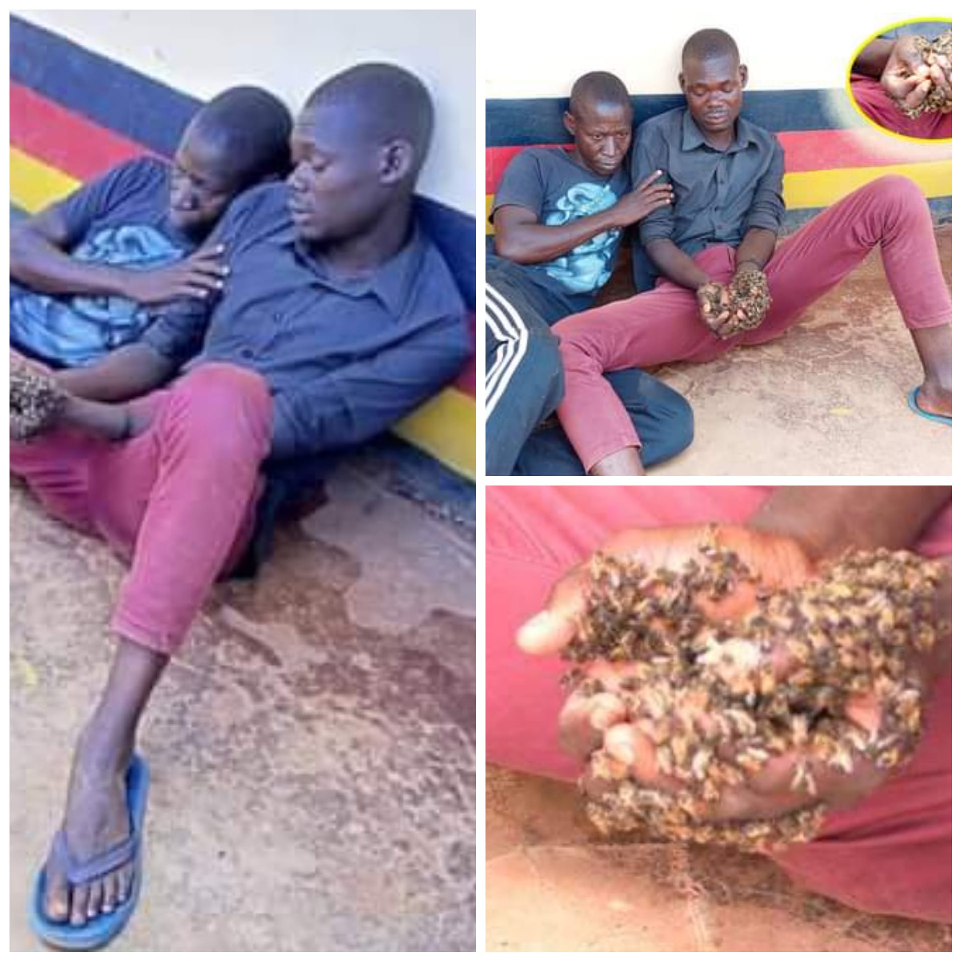 The suspects, who have since been identified as Phillip Wekesa, 32, and Mwamba Ili, 25, could not stop screaming in pain as the bees were stinging them.
