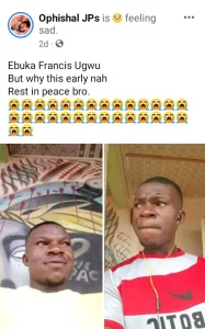 “Ebuka y did u do dis to us. U left without saying goodbye. Death why Ebuka, God will fight for u. D person that killed u will not go Unpunished. His or her generation will be wipe away. Rest In Peace my big bro. Am so hrt broken right now.”