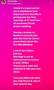 Media personality, Shade Ladipo, took to her Instastories last night to tell women that getting married in their 30s is not an achievement.