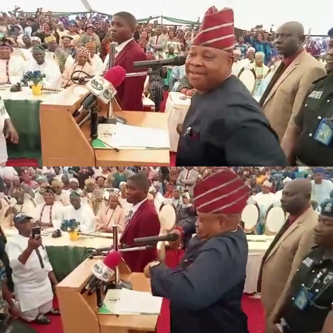 Governor Ademola Adeleke thrilled some residents of Osun state with his dancing skills, as he danced to Kizz Daniel’s song, Buga, on his first day at work as governor of Osun state.