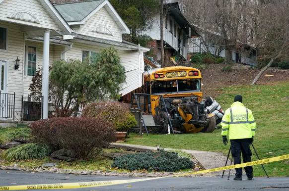 A school bus packed with school boys between the ages of 6 and 11 rolled down a hill and crashed into a house in New York City on Thursday morning, Dec. 1, causing serious injuries.