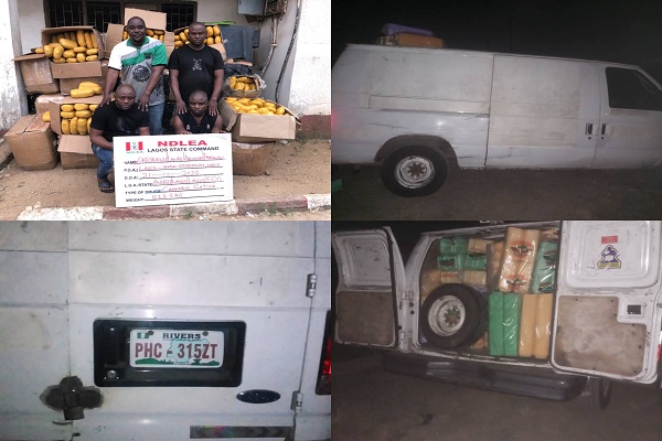 “The drugs concealed with ‘take away’ food packs in 19 big cartons were seized in the white Ford bus heading to Port Harcourt, Rivers state along Lagos-Ibadan expressway at 2:35am on Sunday 22nd Jan. The convicts: Okechukwu Umen, 41; Lanre Adebayo Ismaila, 47; Adeshina Adigun Fatai, 50; and Emmanuel Omijeh, 42, were arrested in connection with the seizure and three million naira (N3,000,000) offered as bribe kept as part of the exhibits for their prosecution.”