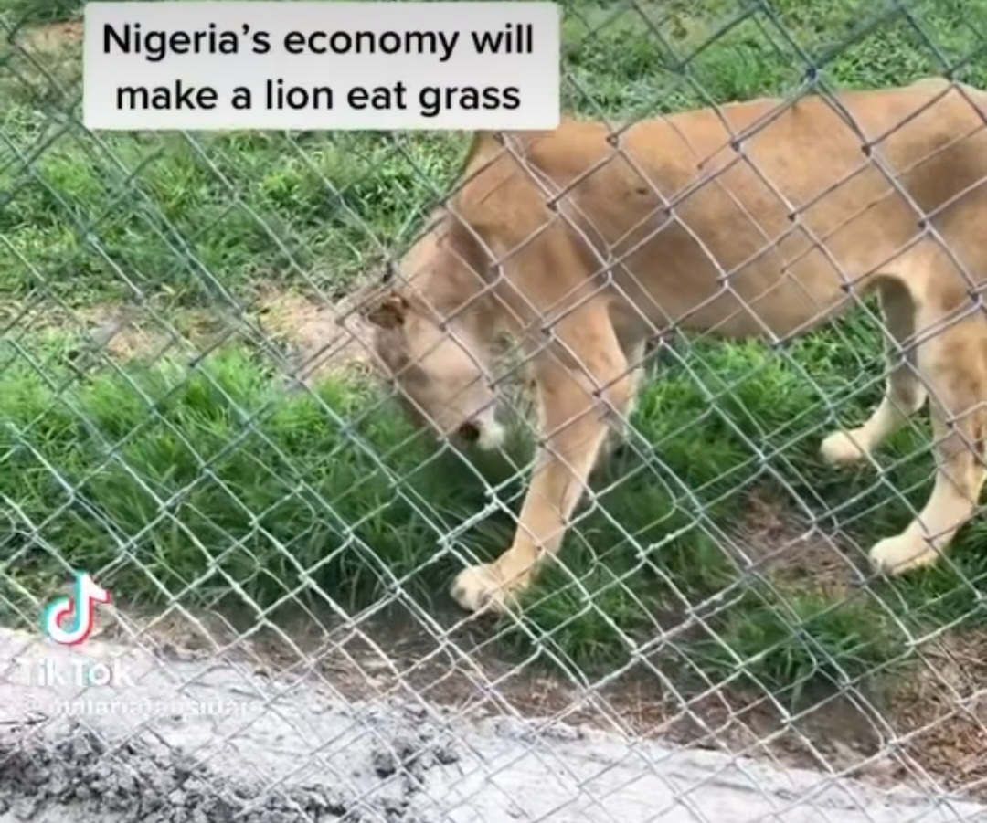 A TikTok user shared the video with the caption “Nigeria’s economy will make a lion eat grass”.