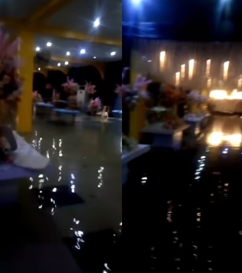 A viral video showed the well-decorated hall located along Refinery Road in Effurun, flooded with water.