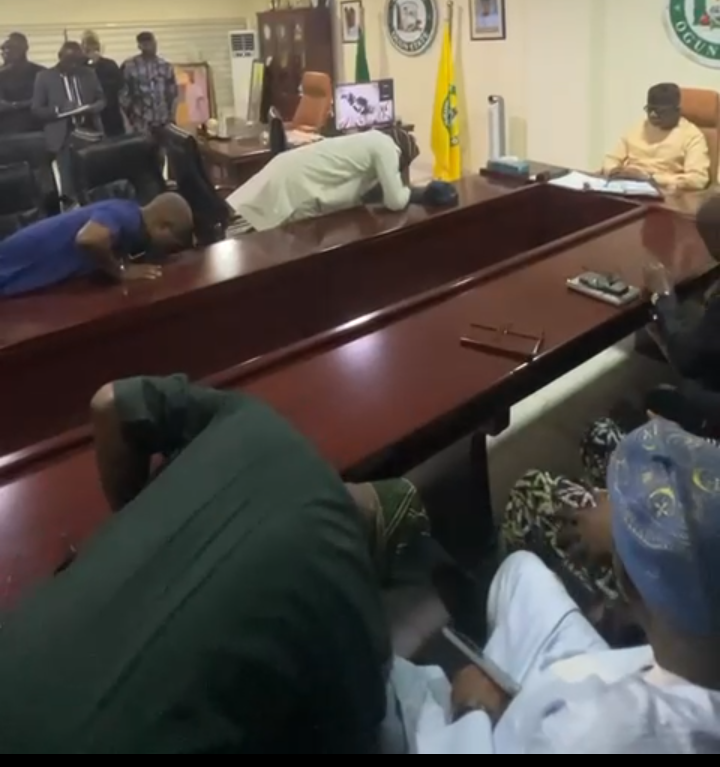 The allegation of illegal tampering with funds meant for local governments by the State Governor, Prince Dapo Abiodun took another dimension on Tuesday evening as all Council Chairmen in Ogun State under the umbrella of Association of Local Government Chairmen, (ALGON) stormed the Oke Mosan Governors Office in Abeokuta to prostrate and beg Governor Dapo Abiodun for forgiveness.