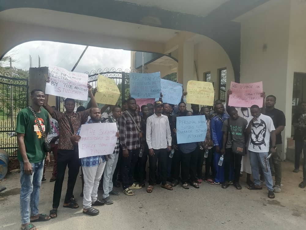 Armed with placards bearing various inscriptions and chanting solidary slogans, the students warned those stoking unrest and disaffection ahead of the Students Union elections in the institution to desist forthwith or risk their wrath.