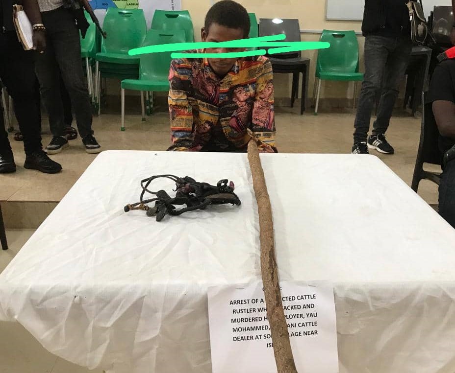 Oyo State Police Command has arrested a 25-year-old cattle rustler, Muhammadu Bello, for allegedly killing his employer, Yay Mohammed, who was a cattle dealer at Soku Village, near Iseyin Town.