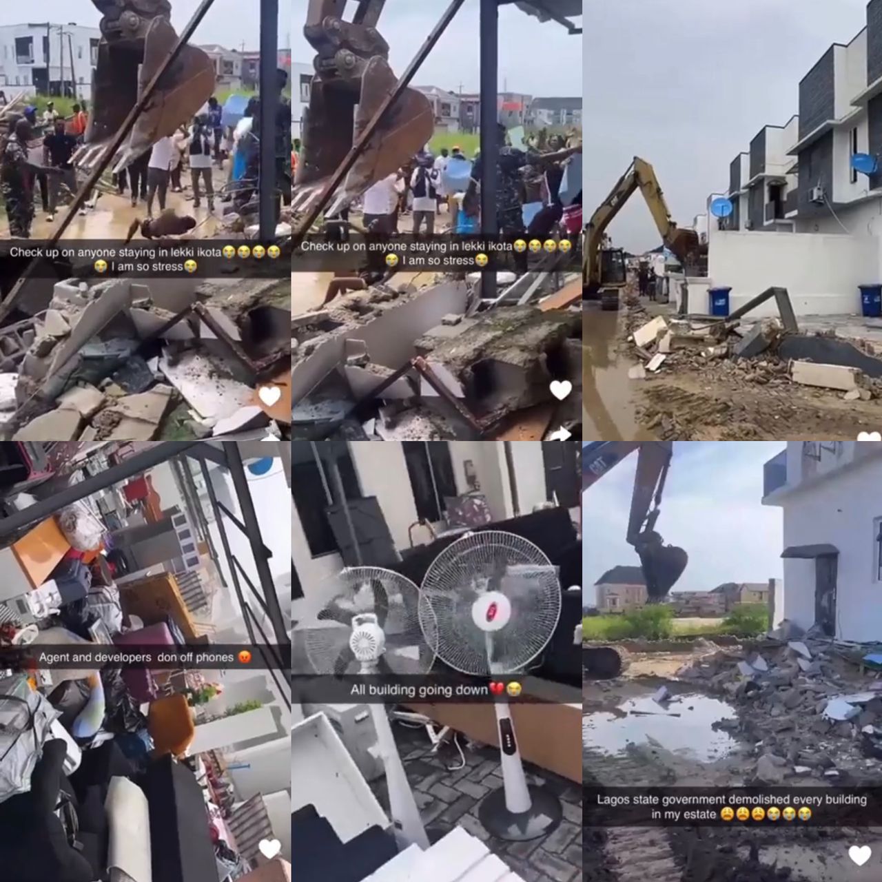 A video of residents of an estate weeping and left in shock after their buildings were demolished in the Ikota axis of Lagos state has surfaced online.