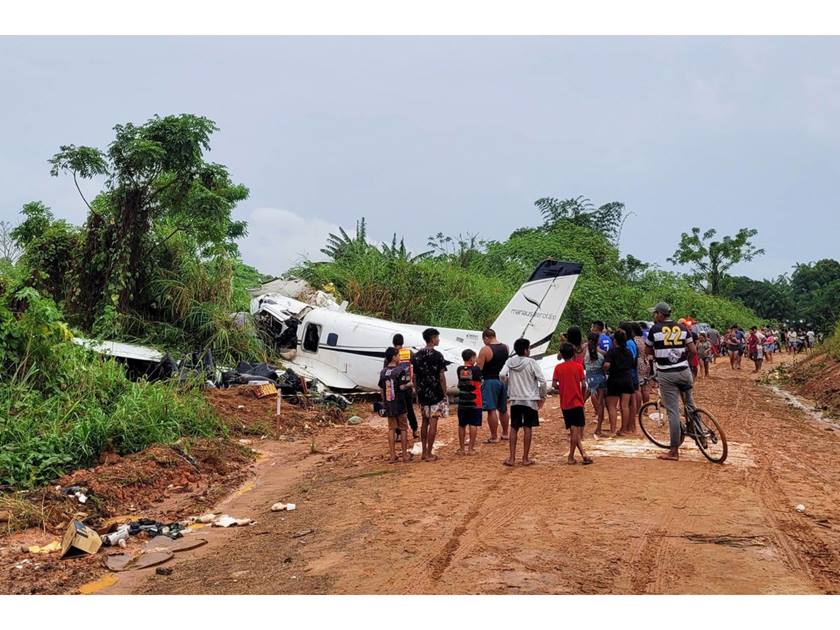 The single-engine plane broke up mid-air and crashed at around 10:30 am (1330 GMT) in the mining town of Itapeva, firefighters told the news agency AFP.