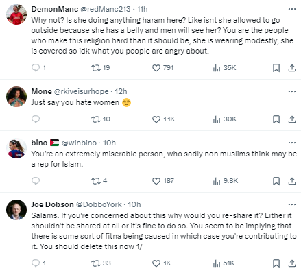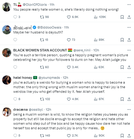 A number of Muslims on X are calling out a pregnant woman for posting her pregnant belly on the app.