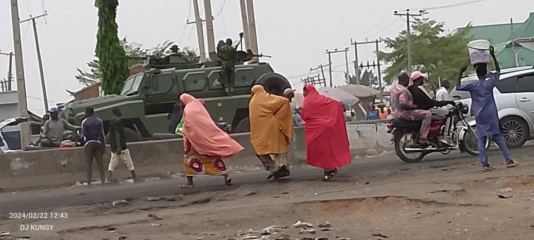 There was pandemonium on Thursday, February 22, 2024, as soldiers opened fire when suspected hoodlums hijacked trailers loaded with foodstuff in the Suleja area of Niger State.