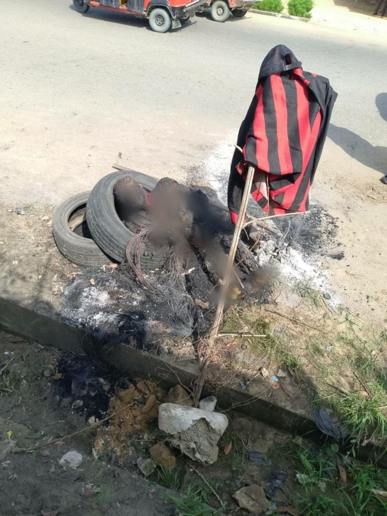 According to a Facebook user, Okoro Chinemerem, who posted photos of the charred remains of the suspect, the incident happened along Ikpa Road on Friday morning, March 15, 2024.