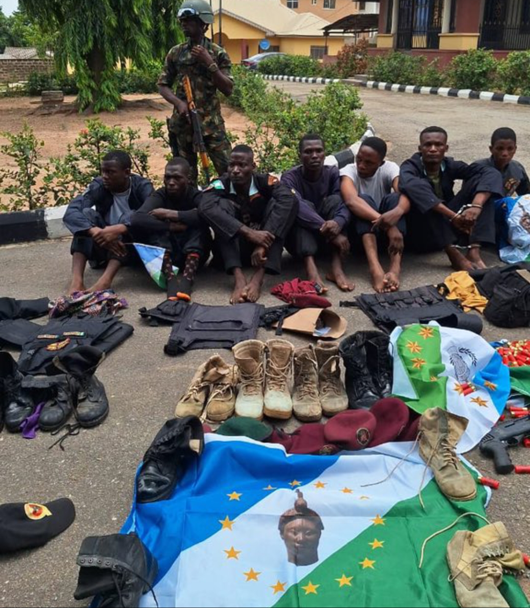 Items recovered from the suspects include three pump-action guns, 291 live cartridges, two expended cartridges, 67 cutlasses, five bulletproof vests, six pairs of boots, 10 megaphones (public address system), three Oodua berets, seven belts, 11 Oodua Nation Army camouflage uniforms, one unregistered Nissan Urban caravan bus and three TVS motorcycles.