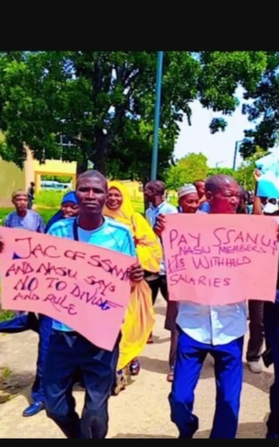 “This protest is geared towards making the government pay us our salaries. They must pay our withheld salaries, they must pay our earned allowances, they must pay all our entitlements, and the 2009 agreement must be respected.