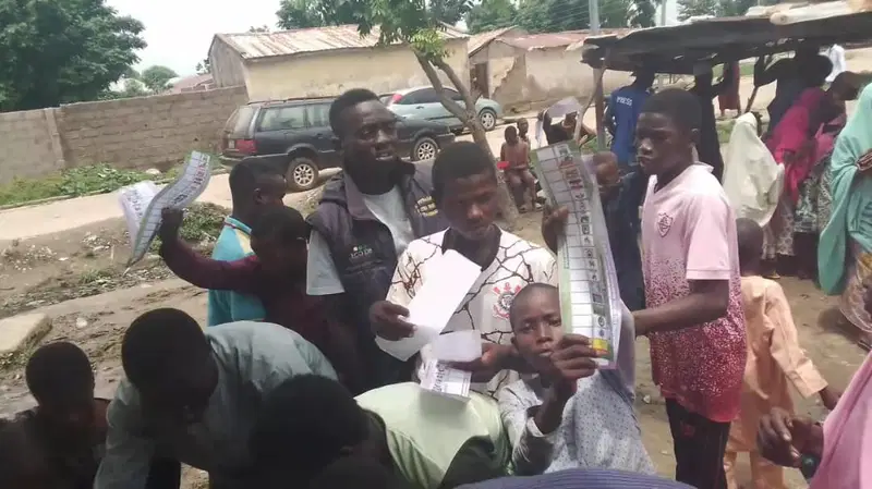 Video footage captured children at Maciya Polling Unit, Senior Primary School Polling Unit, Bunusai Polling Unit in Ningi West and Ningi East Wards casting votes.