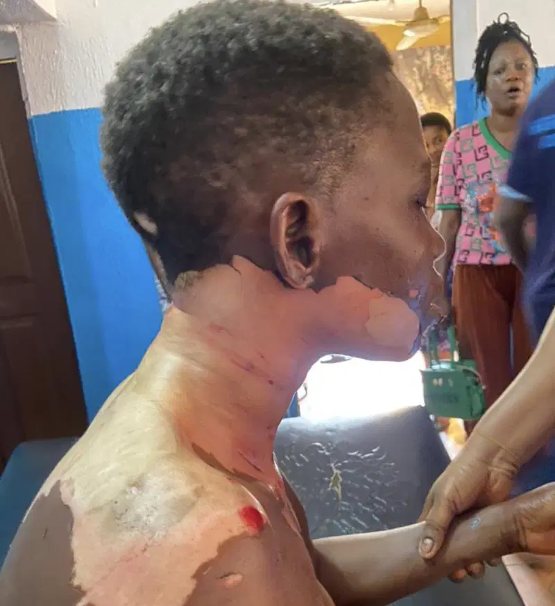 “It was reported that Sholola Kazeem, in an uncontrollable anger over a misunderstanding, poured hot oil over his wife’s body and also stabbed her in the head”.