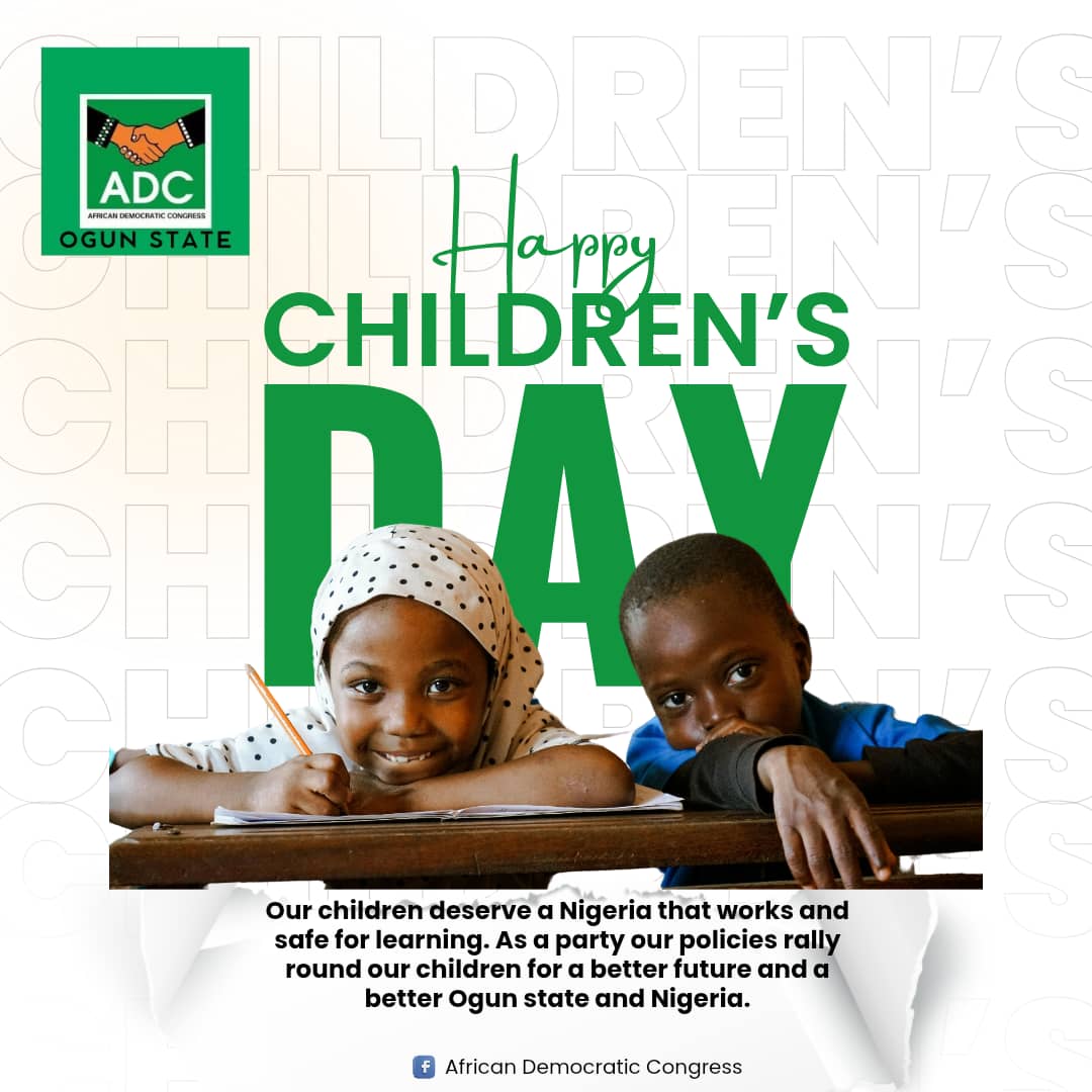 The Ogun State chapter of African Democratic Congress (ADC) has congratulated every Nigerian Child on the ocassion of 2025 children’s day, while reaffirming its commitment to creating a brighter future for every child across the country.