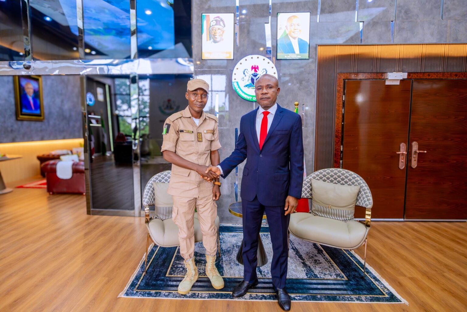 Enugu State Governor, Peter Mbah has received the immigration officer, Prince Ugochukwu Orji, who apprehended the suspected runaway Enugu ritualist and Kidnapper, Obi-Levi Obieze.