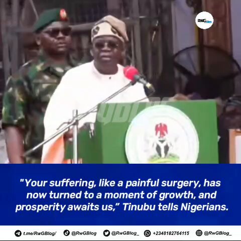 “There is a bright light at the end of the tunnel. Your suffering is a pain, a pain of a painful surgery, but it has now returned to the moment of growth, and prosperity is awaiting us ahead,” Tinubu said.