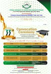 The Federal University of Agriculture, Abeokuta (FUNAAB), has released the programme of events for its 33rd Convocation Ceremony, reaffirming its commitment to academic excellence, innovation and national development.